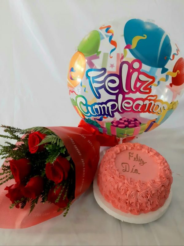 Ramo de 6 rosas, torta de tres leches (6-8 porciones),globo temático y tarjeta de saludos.