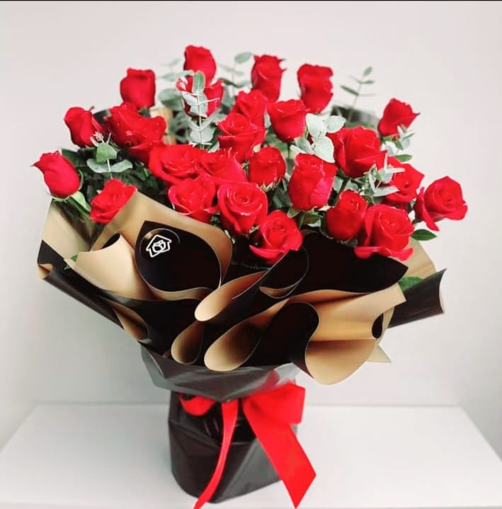RAMO DE 24 ROSAS TARJETA DE SALUDOS