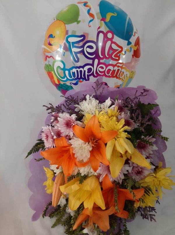 El ramo primaveral está compuesto con flores de acuerdo a la estación, más Globo temático según el motivo y Tarjeta de saludos.